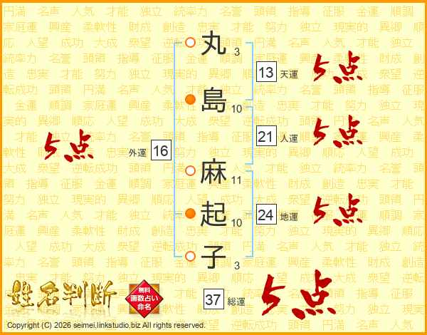 丸島麻起子さんの総運は37画の5点!