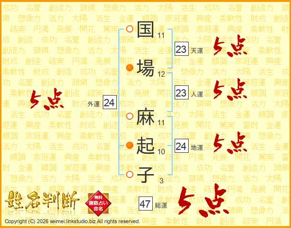 国場麻起子さんの総運は47画の5点!