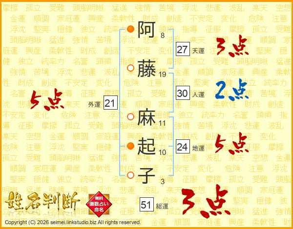 阿藤麻起子さんの総運は51画の3点!