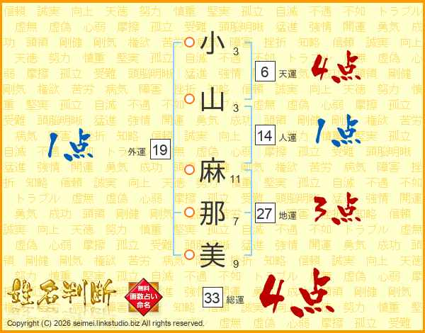 小山麻那美さんの総運は33画の4点!