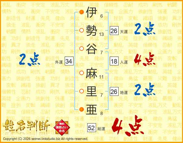 伊勢谷麻里亜さんの外運は34画の2点!