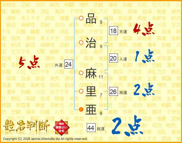 品治麻里亜さんの総運は44画の2点!