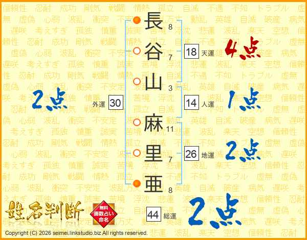 長谷山麻里亜さんの地運は26画の2点!