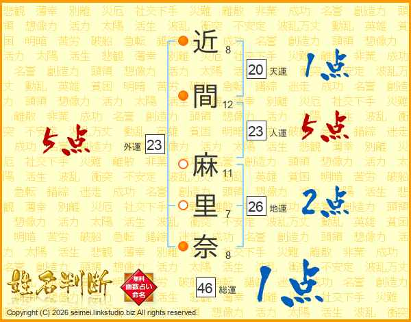 近間麻里奈さんの総運は46画の1点!
