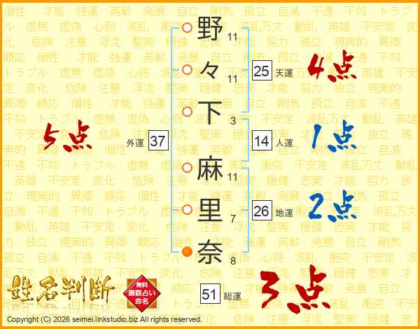 野々下麻里奈さんの総運は51画の3点!