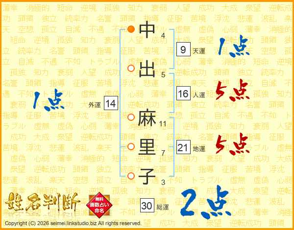中出麻里子さんの総運は30画の2点!