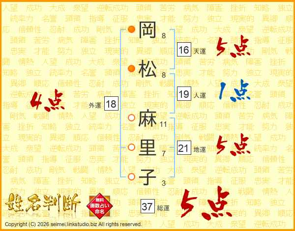 岡松麻里子さんの総運は37画の5点!