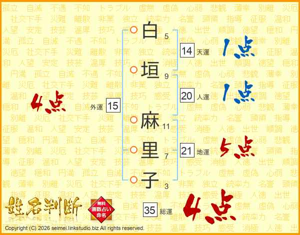 白垣麻里子さんの総運は35画の4点!