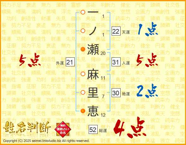 一ノ瀬麻里恵さんの総運は52画の4点!