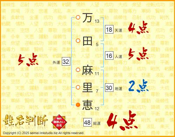 万田麻里恵さんの外運は32画の5点!
