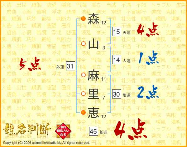 森山麻里恵さんの総運は45画の4点!