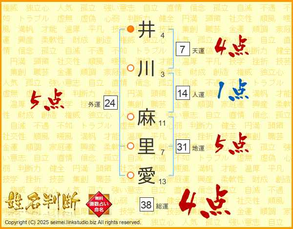 井川麻里愛さんの総運は38画の4点!