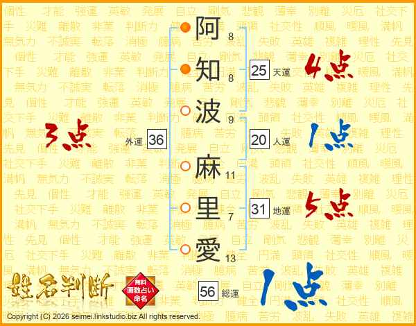 阿知波麻里愛さんの地運は31画の5点!