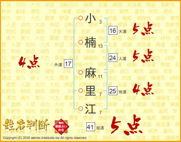 小楠麻里江さんの総運は41画の5点!