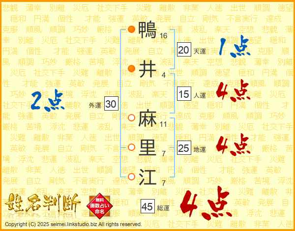 鴨井麻里江さんの総運は45画の4点!
