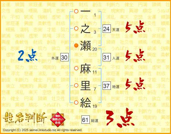一之瀬麻里絵さんの総運は61画の3点!