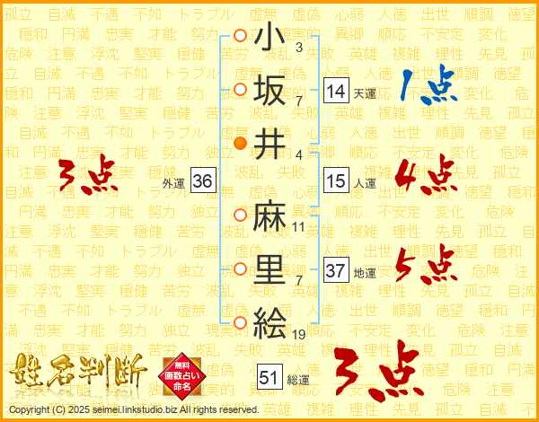 小坂井麻里絵さんの地運は37画の5点!