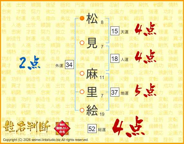 松見麻里絵さんの総運は52画の4点!