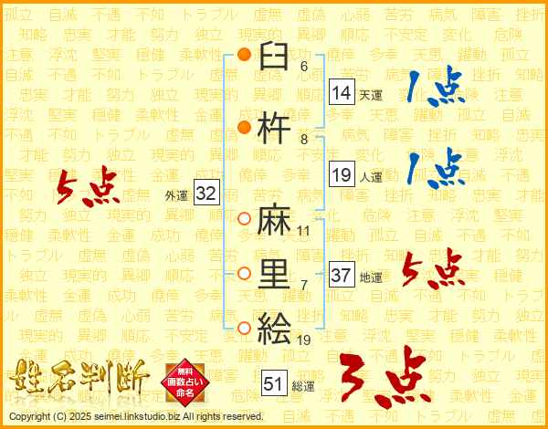 臼杵麻里絵さんの外運は32画の5点!