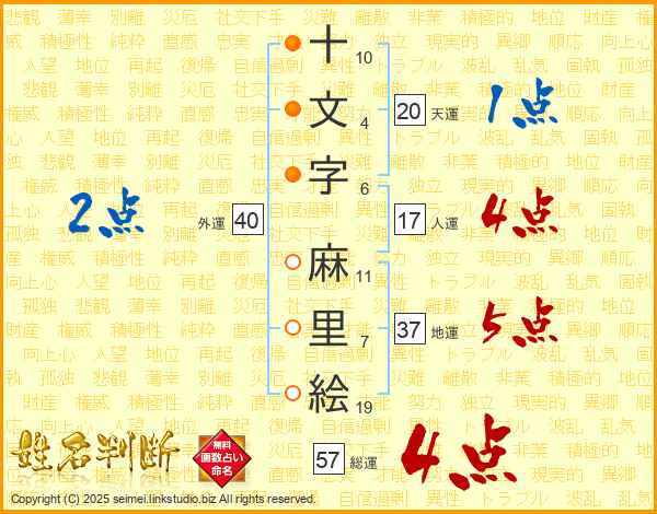 十文字麻里絵さんの総運は57画の4点!