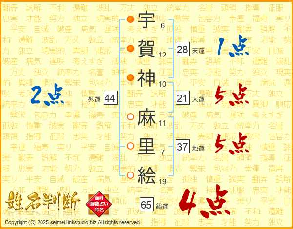 宇賀神麻里絵さんの総運は65画の4点!