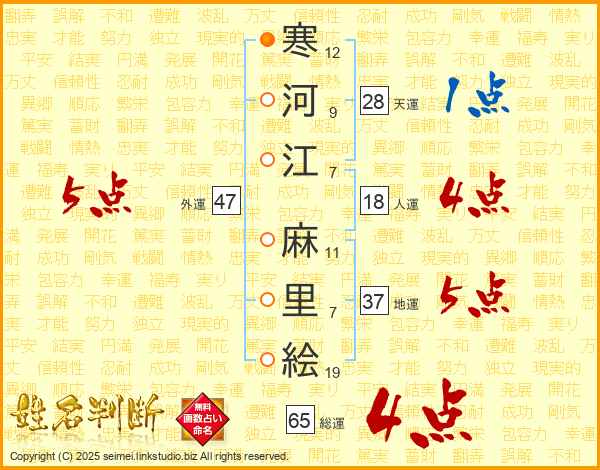 寒河江麻里絵さんの総運は65画の4点!
