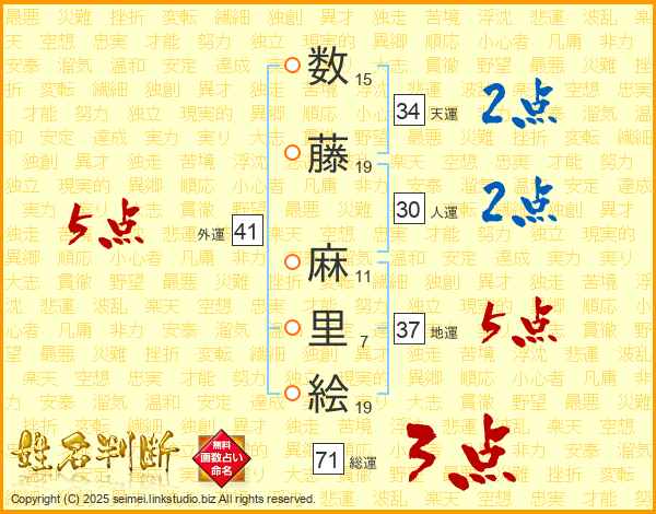数藤麻里絵さんの天運は34画の2点!