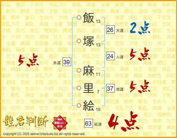 飯塚麻里絵さんの総運は63画の4点!