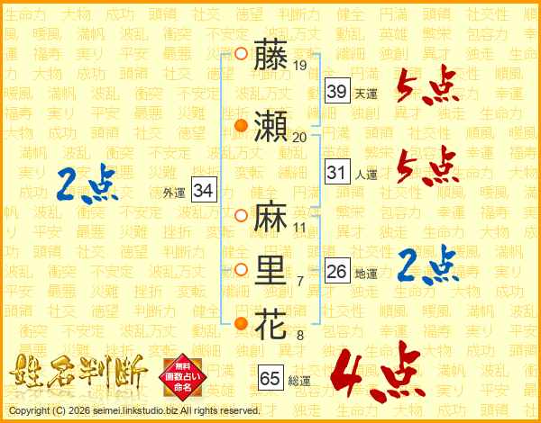 藤瀬麻里花さんの総運は65画の4点!