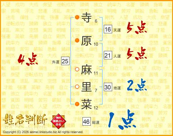 寺原麻里菜さんの総運は46画の1点!