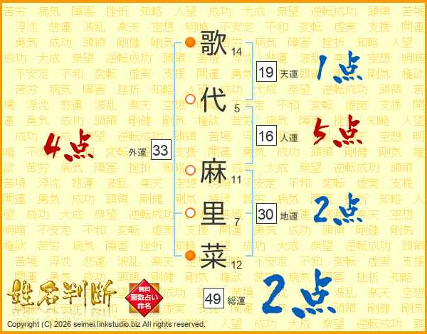 歌代麻里菜さんの総運は49画の2点!
