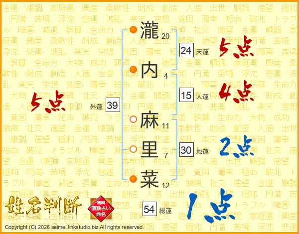 瀧内麻里菜さんの外運は39画の5点!