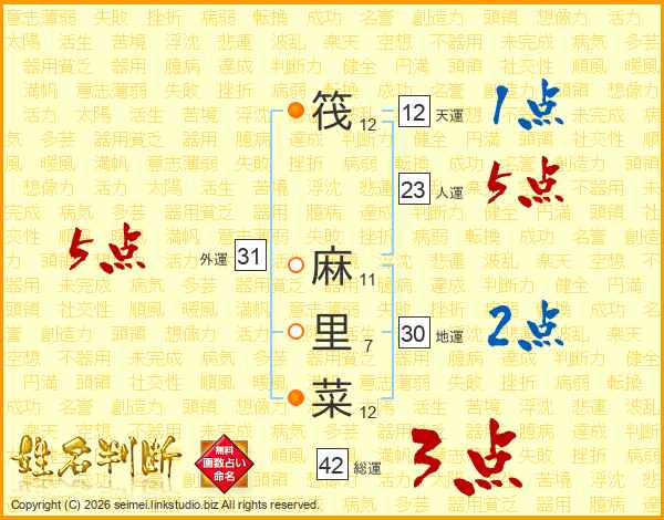 筏麻里菜さんの天運は12画の1点!