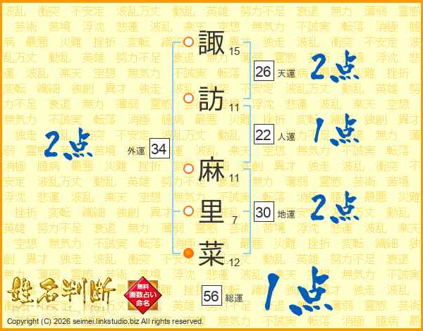 諏訪麻里菜さんの天運は26画の2点!