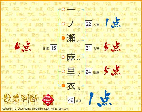 一ノ瀬麻里衣さんの総運は46画の1点!