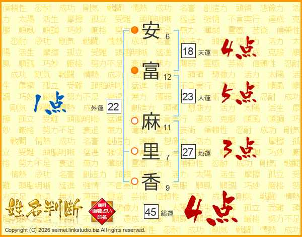安富麻里香さんの総運は45画の4点!