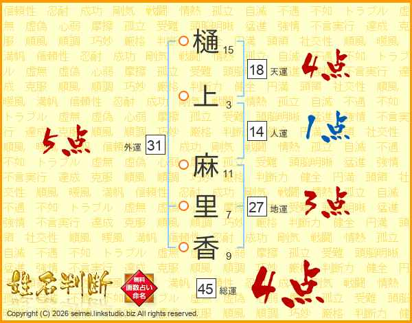 樋上麻里香さんの総運は45画の4点!