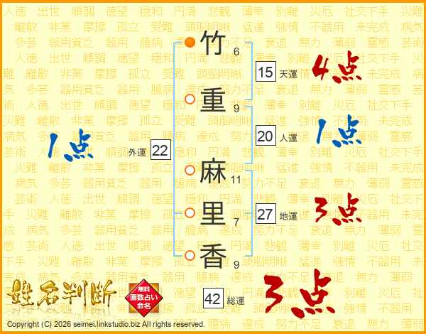 竹重麻里香さんの総運は42画の3点!