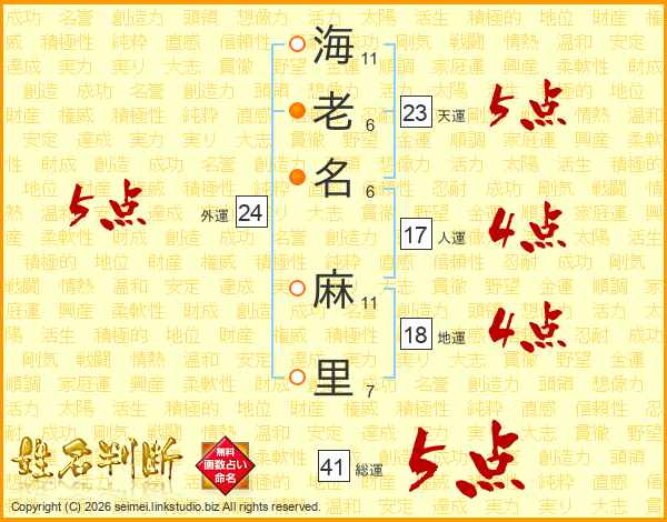 海老名麻里さんの外運は24画の5点!
