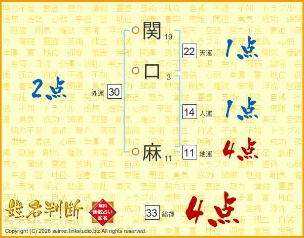 関口麻さんの総運は33画の4点!