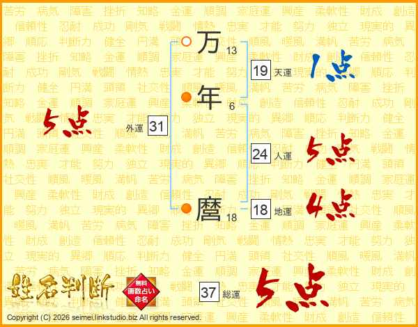 万年麿さんの総運は37画の5点!