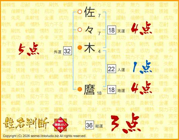 佐々木麿さんの外運は32画の5点!