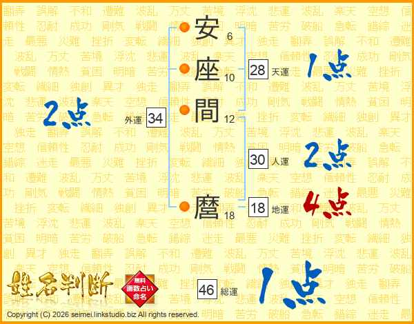 安座間麿さんの総運は46画の1点!