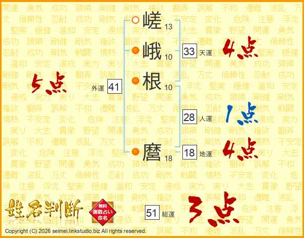 嵯(13画)峨(10画)根(10画) 麿(18画)