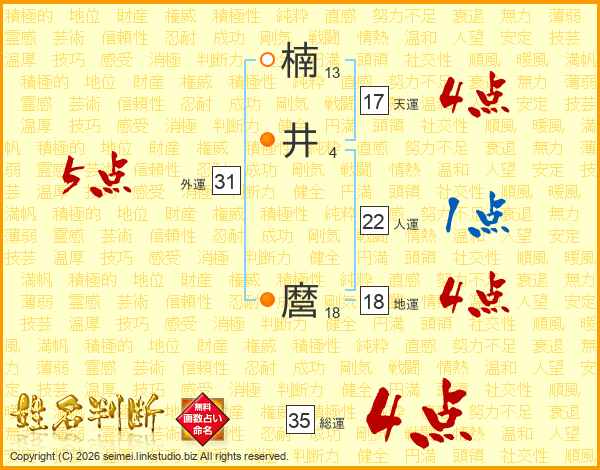 楠井麿さんの総運は35画の4点!