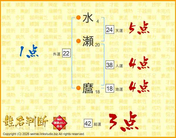 水瀬麿さんの総運は42画の3点!