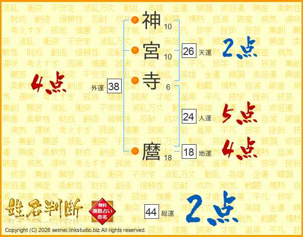神宮寺麿さんの総運は44画の2点!