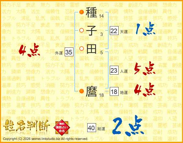 種子田麿さんの総運は40画の2点!