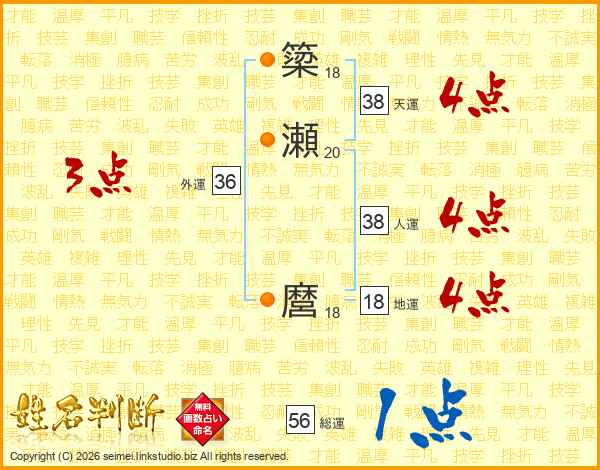 簗瀬麿さんの総運は56画の1点!