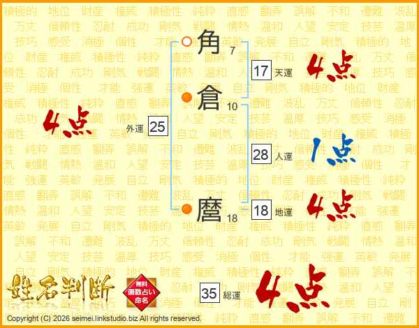 角倉麿さんの総運は35画の4点!